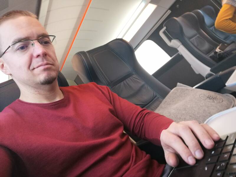 Ich stehe früh morgens auf und fahre mit der U-Bahn zum Wiener Westbahnhof. Zunächst hole ich mir ein Frühstück für unterwegs und nehme dann auf meinem diesmal reservierten Sitz Platz. Natürlich wieder im Oberdeck. Um 7:08 Uhr rollt der Zug los. Wenige Minuten später winke ich meinen lieben Freunden Hannes und Schrenzi zu, als ich am Bahnhof Wien Hütteldorf stehe. Diese wiederum sind auf dem Weg nach St. Pölten, um ihr Wanderprojekt entlang der Mariazellerbahn zu starten. Witzig!