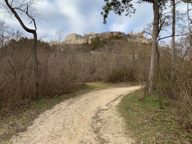 Nach dieser aufregenden Erfahrung gehen wir wieder zurück und besuchen noch den kleinen Kalvarienberg, der südlich der Ruine liegt. Es handelt sich dabei um einen schönen Kreuzweg, der an kleinen Kapellen vorbei bis hinauf zur Jesus-Statue führen.