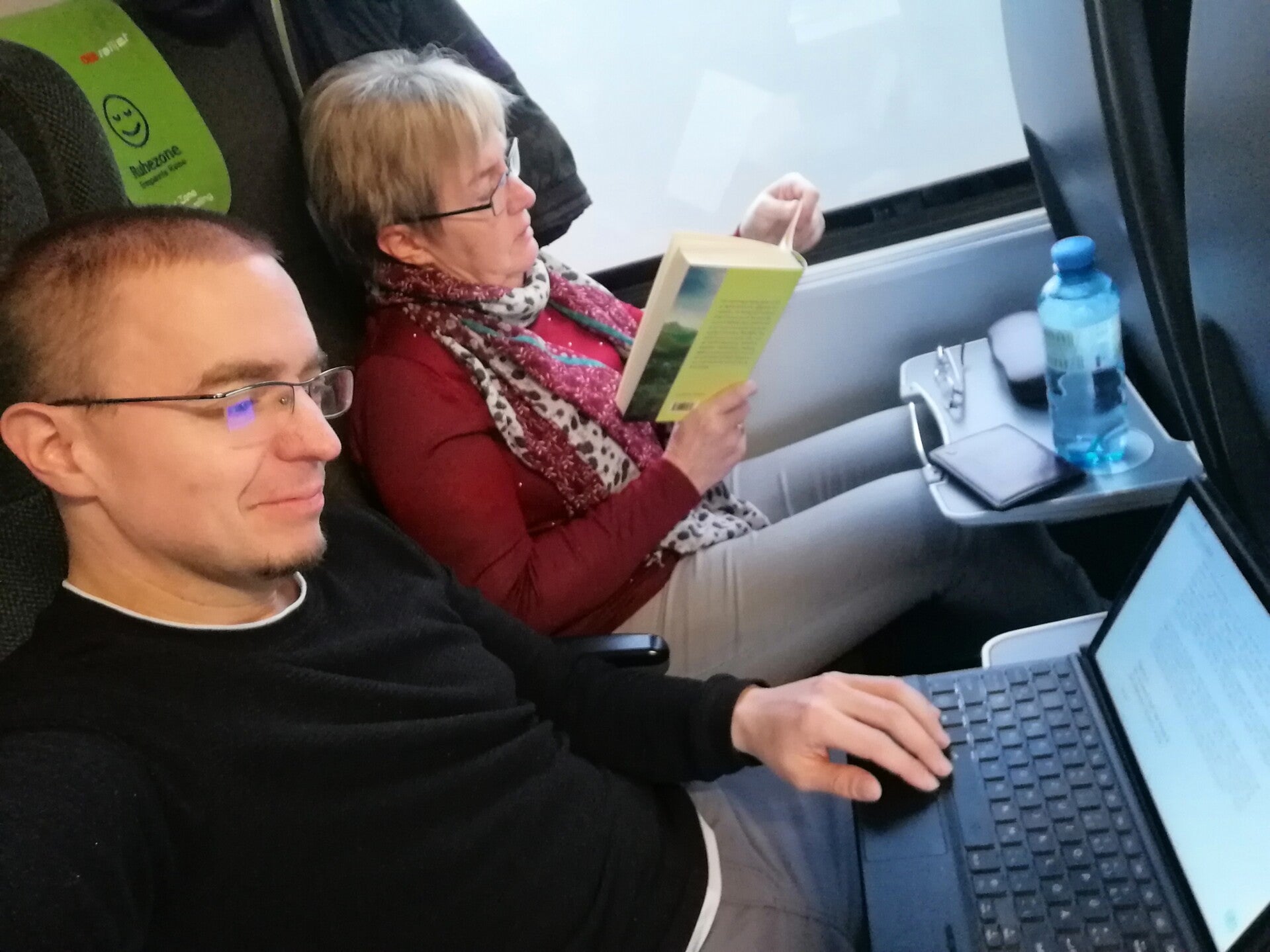 Entlang der Fahrt geht jeder seinen Hobbys nach. Meine Mutter verschlingt wieder mal ein Buch. Und ich? Ich mache bekanntlich so was Ähnliches. Ich schreibe eines.